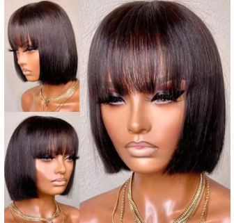 Brazilian Human Hair Wig with Bangs Remy Straight Hair Bob Wigs