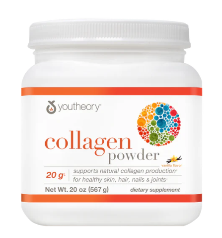 Collagen is a major structural protein in the human body (found in skin, joints, bones, blood vessels and connective tissues). As we age, collagen naturally breaks down and diminishes over time, leading to the early signs of aging. Youtheory® Collagen Powder is designed to help counteract age-related collagen loss.* Supplying 20 mg of hydrolyzed collagen per serving, this convenient and easy-to-use product helps replenish essential beauty proteins, while delivering powerful health benefits.* This formula is enhanced with vitamin C to aid internal collagen production and Biotin to support health and beauty factors.*