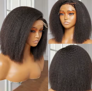 Kinky Yaki Straight Short Bob Wig Lace Frontal 100% Human Hair Wig With Baby Hair-DoveAvailability: 3 in stock