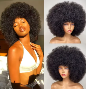Glueless Afro Kinky Curly Wig Human Hair for Women Short Fluffy and easy manageable Wigs